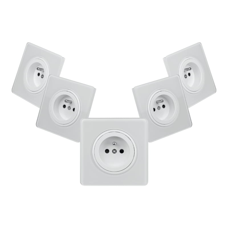 5 x gniazdo z ramką szklaną, białe, OVAL