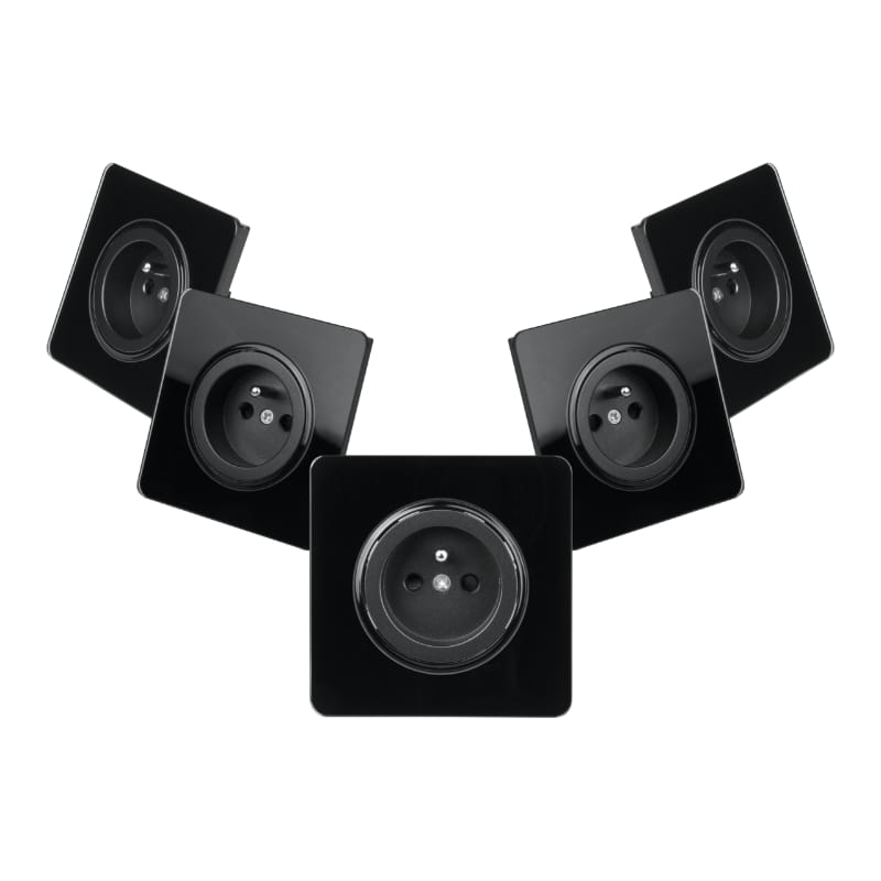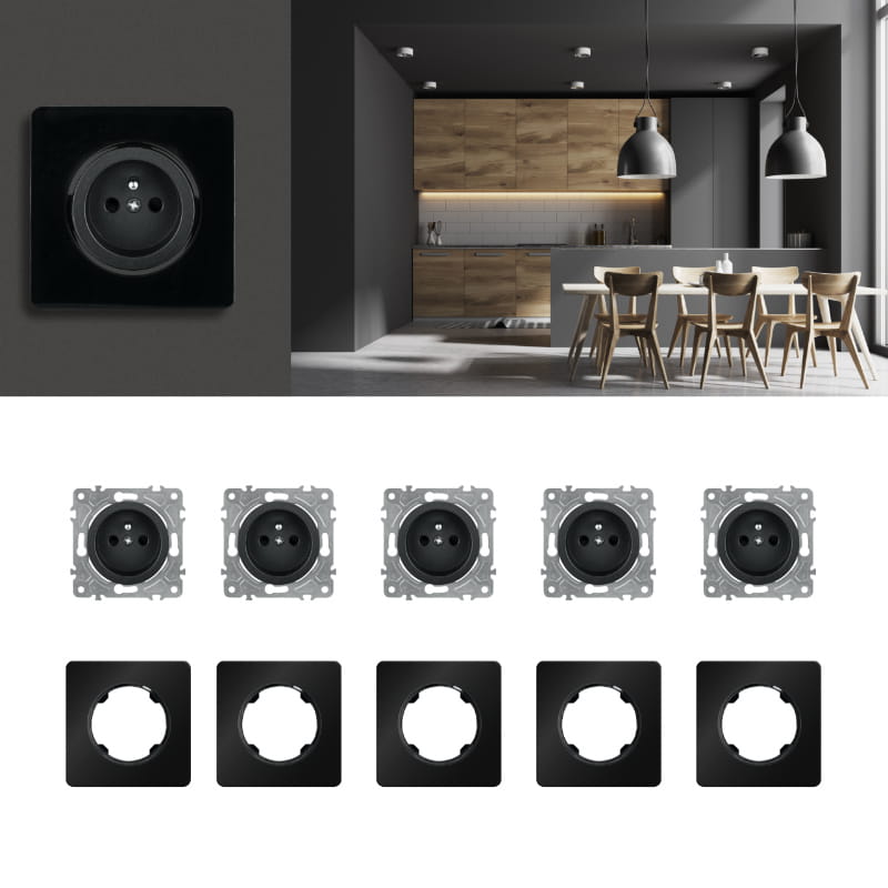 5 x gniazdo z ramką szklaną, czarne, OVAL