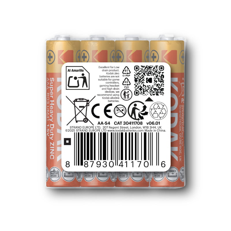 Bateria cynkowo-węglowa R06 (AA), 4 szt., folia, SUPER HEAVY DUTY, KODAK