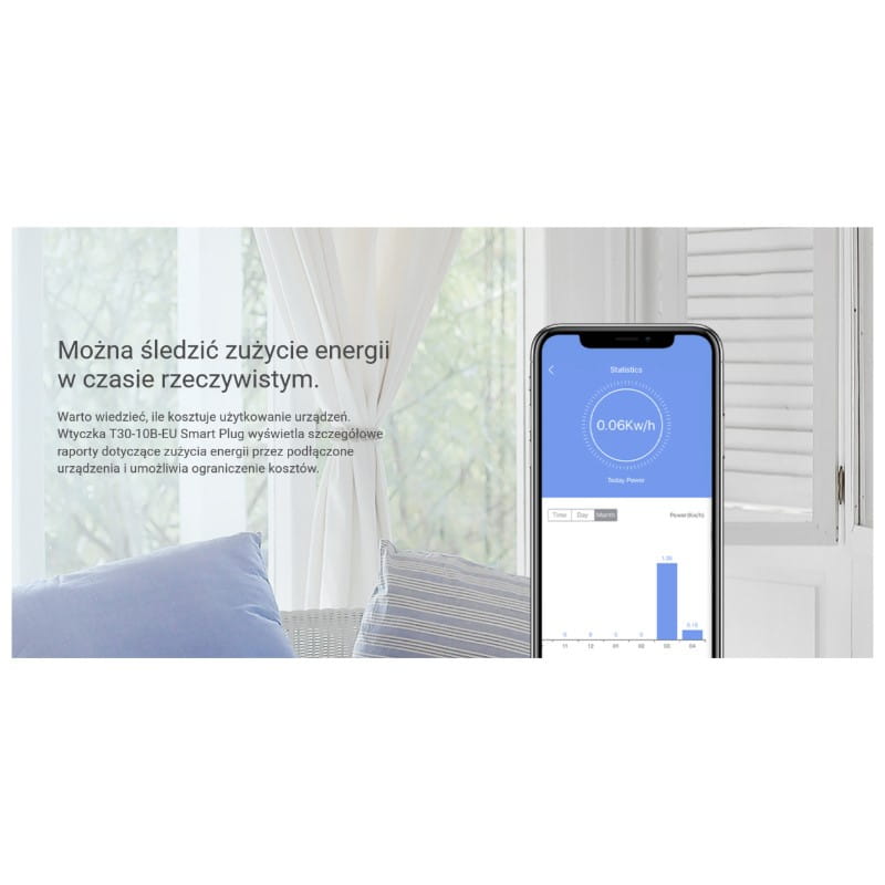 Chcesz wiedzieć, jaka jest realny pobór mocny Twojego urządzenia? Z T30możesz monitorować w czasie rzeczywistym zużycie prądu, co pozwolić Ci naoszacowanie kosztów energii elektrycznej, wykorzystywanej do pracy dowolnegourządzenia domowego.