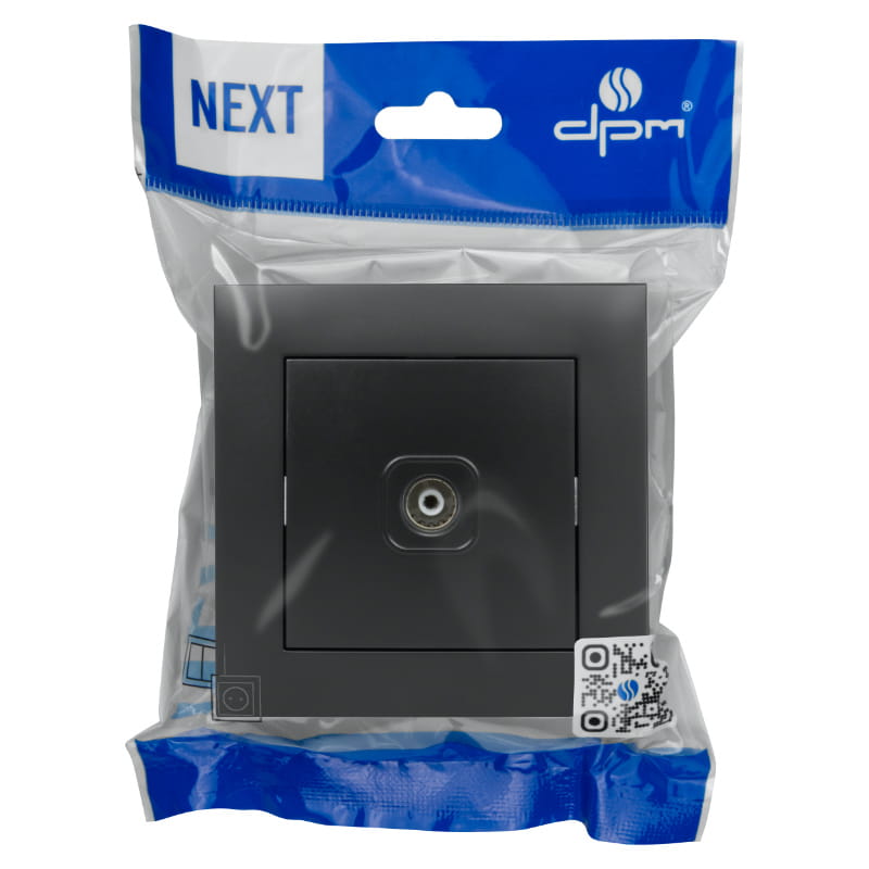 Gniazdo antenowe TV z ramką, czarne, NEXT
