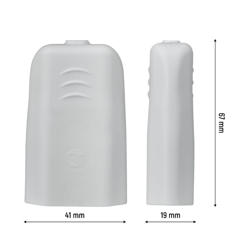 Z wymiarami 67 x 44 x 22 mm, gniazdo WT002W jest estetyczne i dyskretne. Biały kolor pasuje do większości wnętrz, nadając urządzeniom spójny i nowoczesny wygląd.