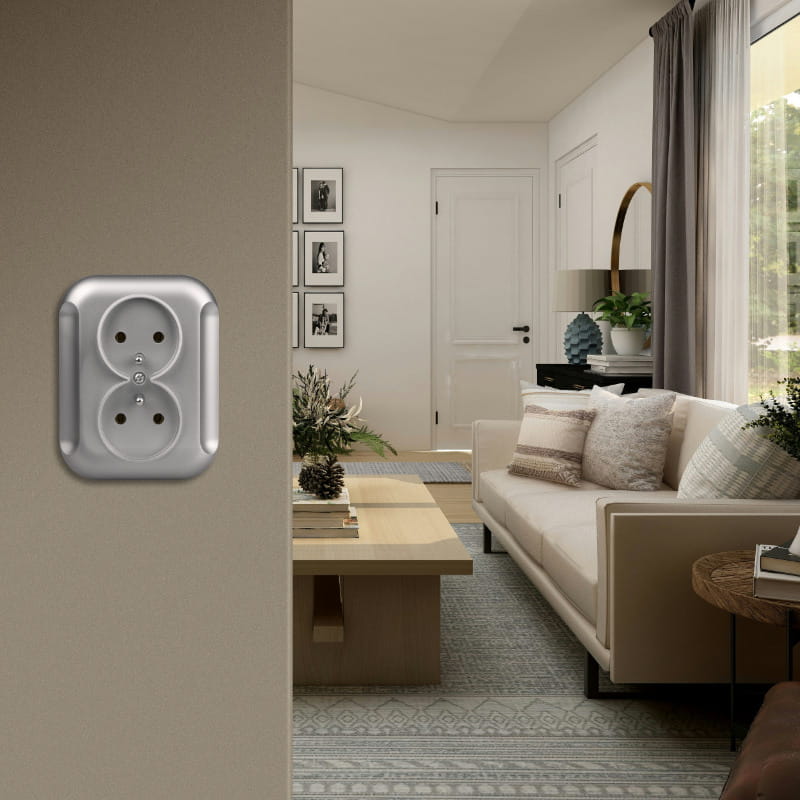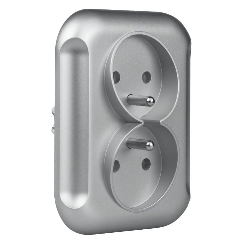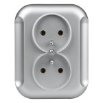Gniazdo podwójne 2P+Z, podtynkowe, srebrne, Topaz, TIMEX
