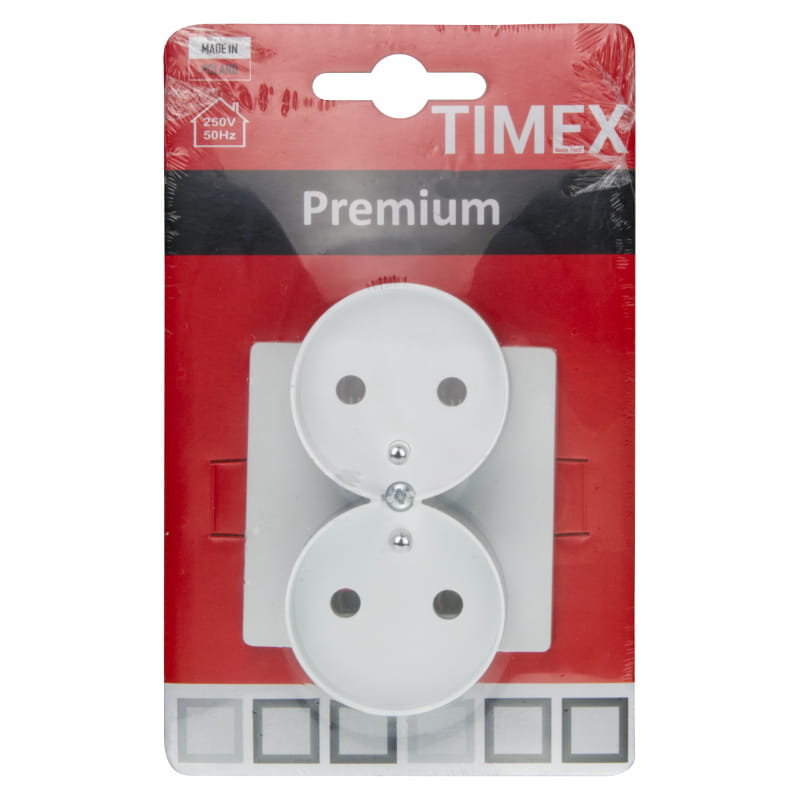 Gniazdo podwójne 2P+Z bez ramki, podtynkowe, białe, Premium, TIMEX