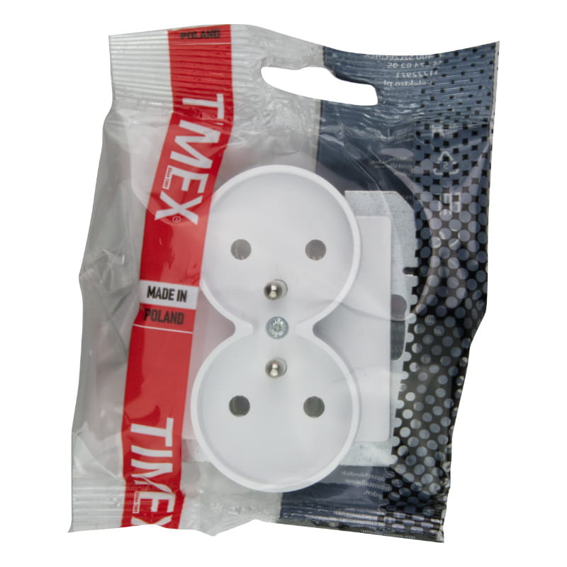 Gniazdo podwójne 2P+Z bez ramki, podtynkowe, białe, Prestige, TIMEX