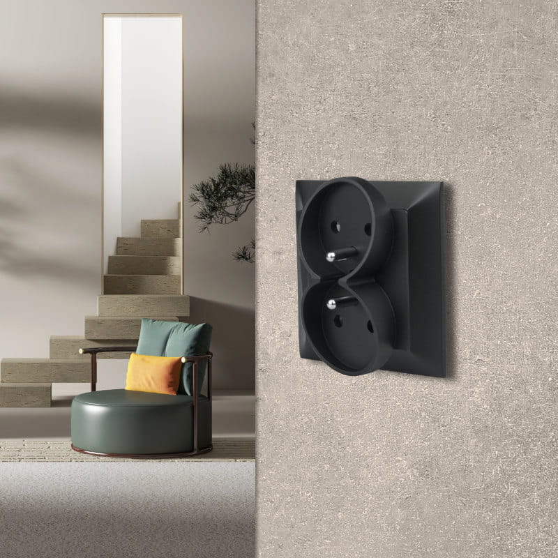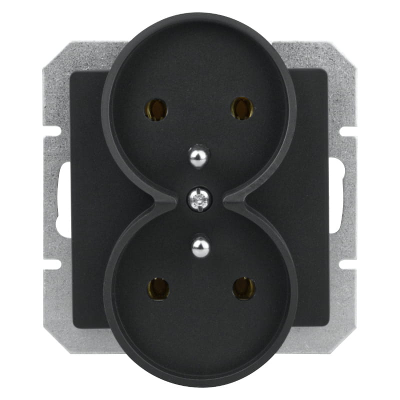 Gniazdo podwójne 2P+Z bez ramki, podtynkowe, czarne, Premium, TIMEX