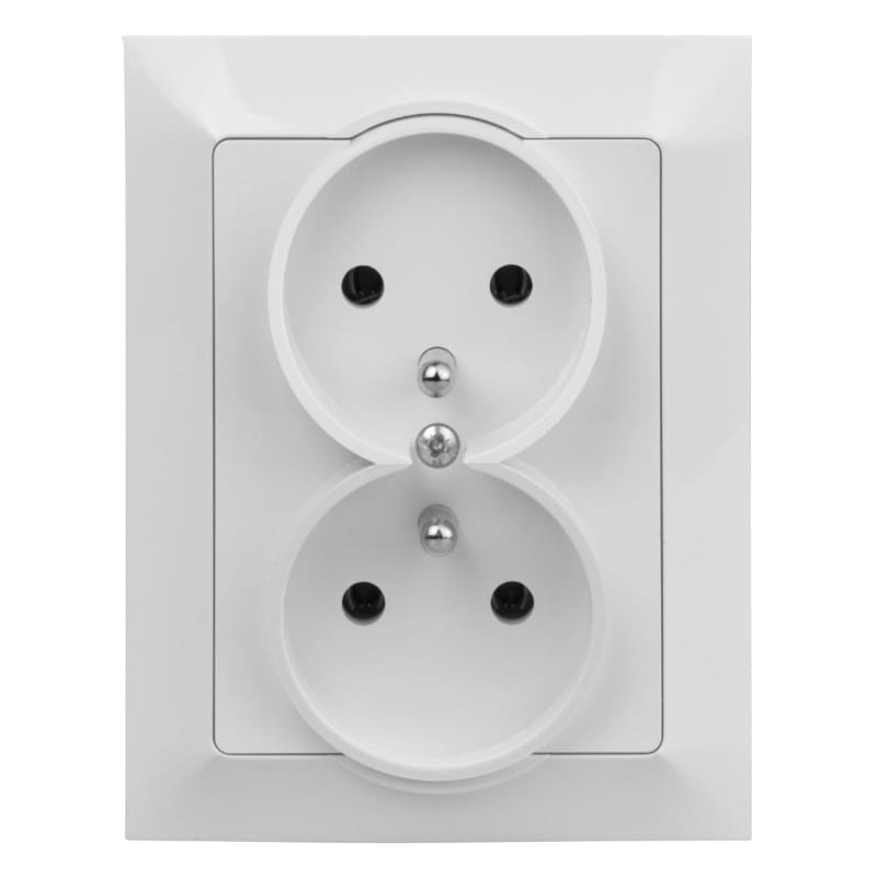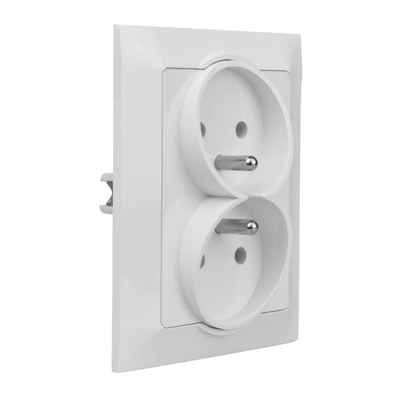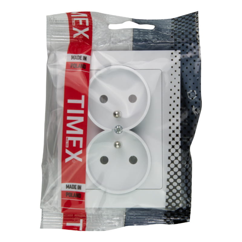 Gniazdo podwójne 2P+Z z ramką, podtynkowe, białe, Premium, TIMEX