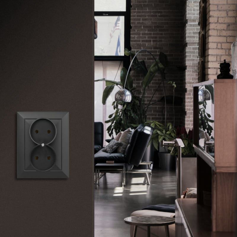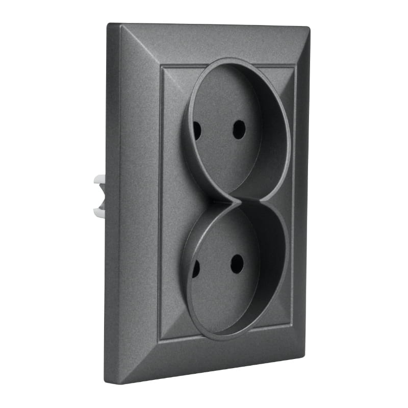 Gniazdo podwójne 2x2P, podtynkowe, grafitowe, Opal, TIMEX