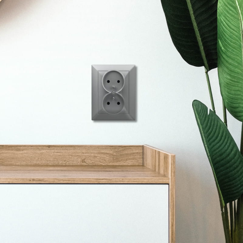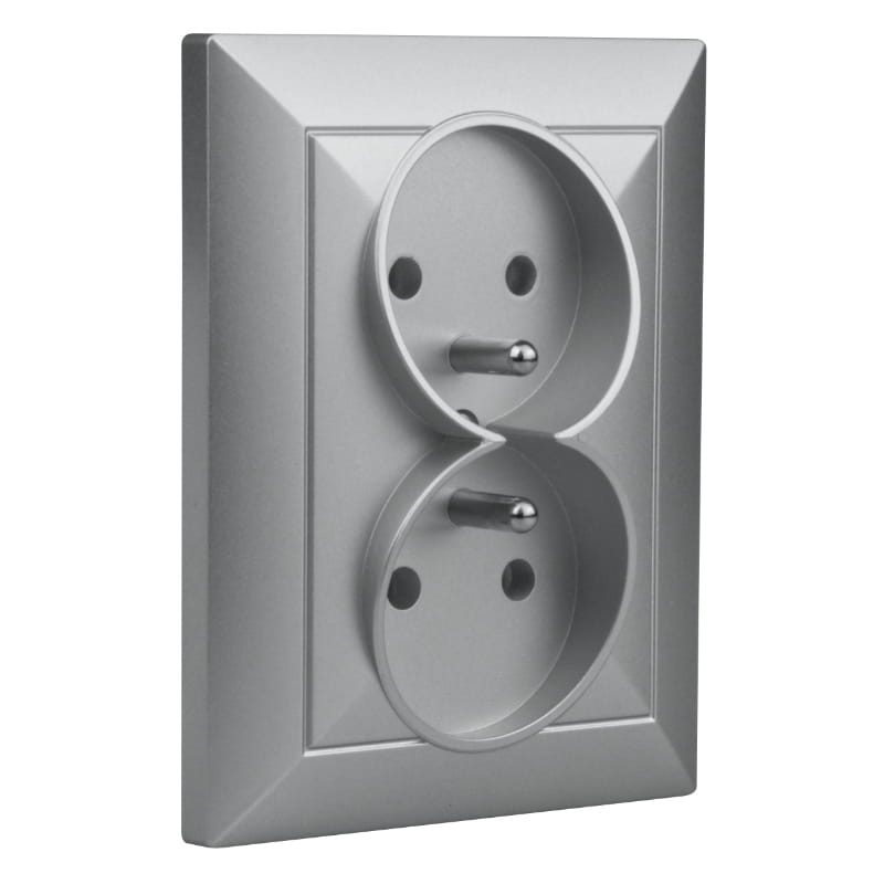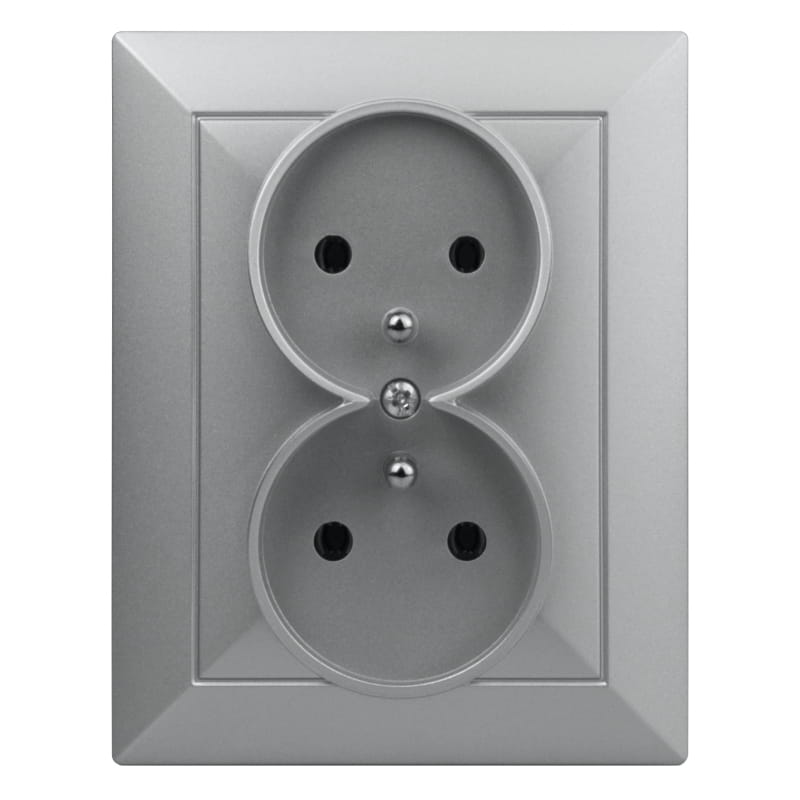 Gniazdo podwójne 2x2P+Z, podtynkowe, srebrne, Opal, TIMEX