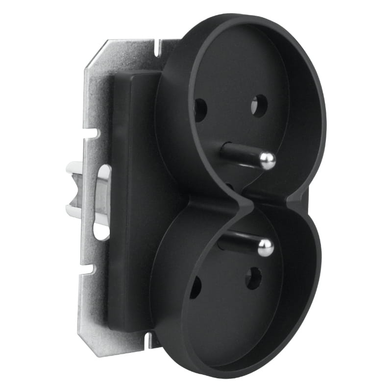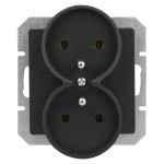 Gniazdo podwójne 2x2P+Z bez ramki, podtynkowe, IP44, czarne, Prestige, TIMEX