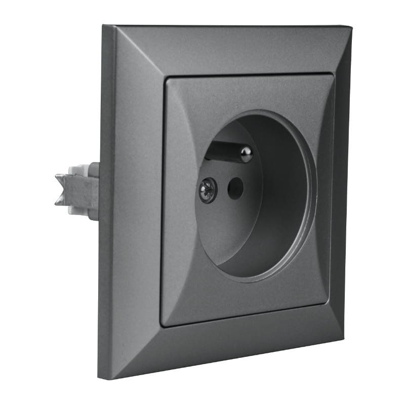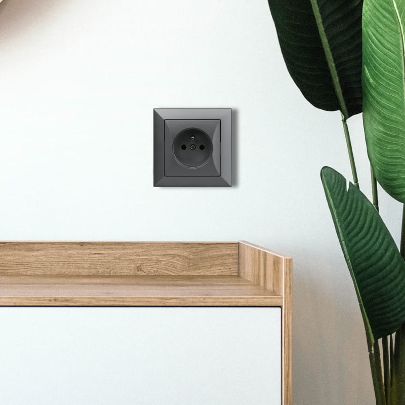 Gniazdo pojedyncze 2P+Z, podtynkowe, grafitowe, Opal, TIMEX