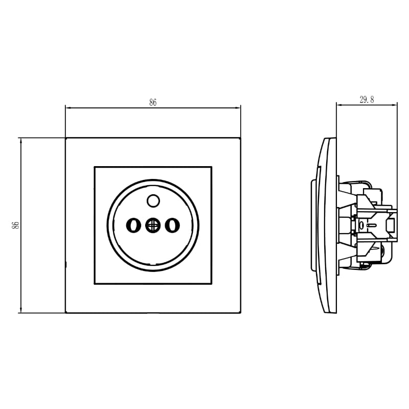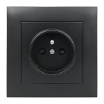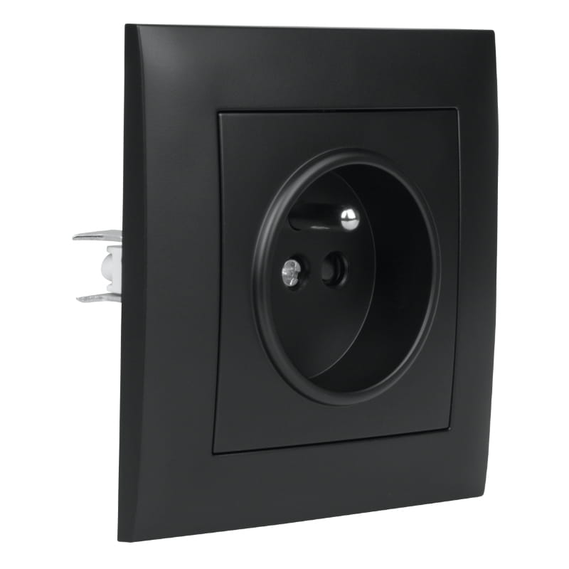 Gniazdo z uziemieniem z ramką, czarne, NEXT