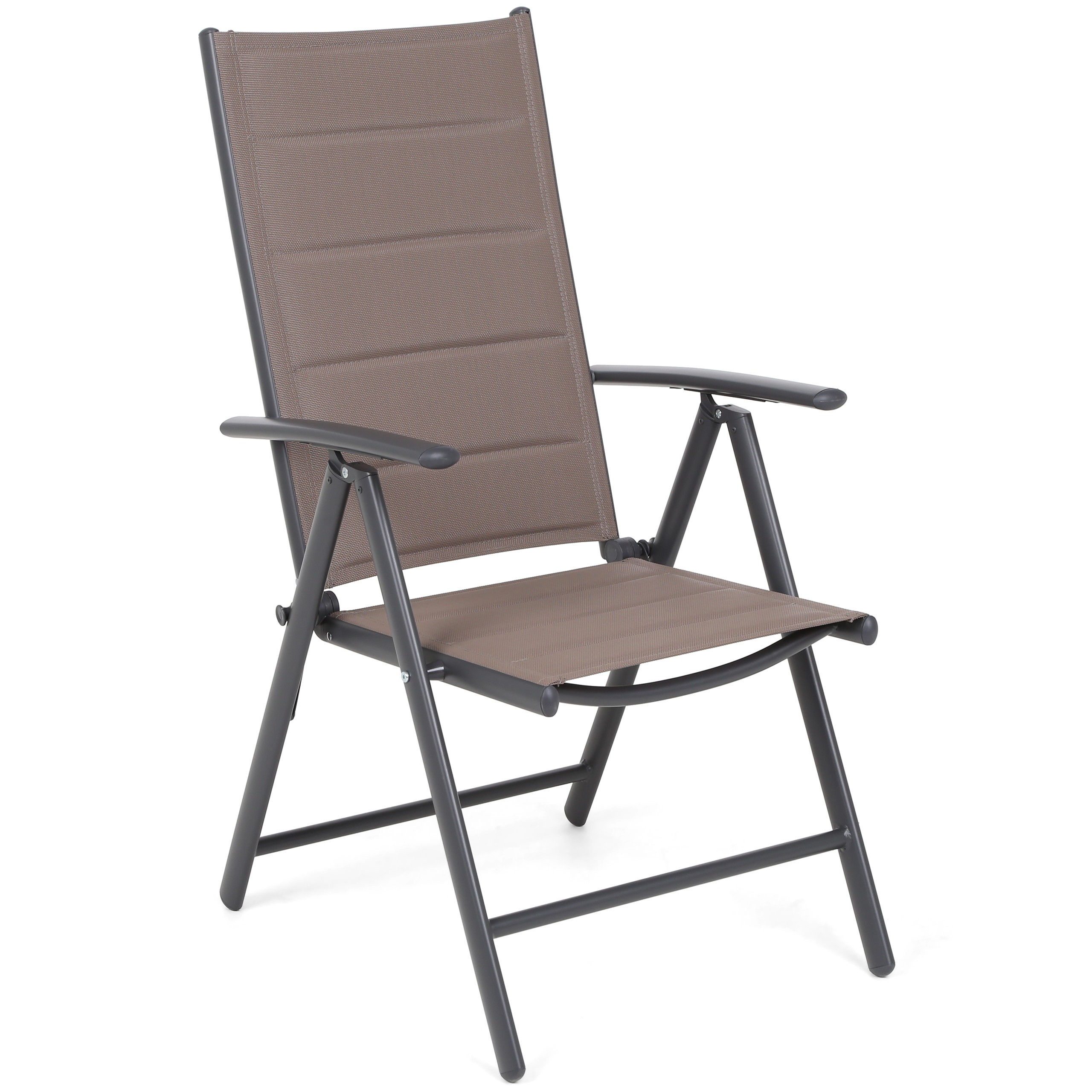 Składane krzesła z siedmiopozycyjną regulacją oparcia, tapicerowane są dwustronnie tkaniną typu texteline, która nie płowieje, nie ulega trwałemu odkształceniu, nie wchłania wilgoci i szybko schnie. Pięciokrotnie pikowane oparcie oraz czterokrotnie pikowane siedzisko idealnie komponuje się z blatem stołu. Odpowiednio grube wypełnienie z gąbki tapicerskiej użyte do produkcji krzeseł znacznie podnosi komfort użytkowania.