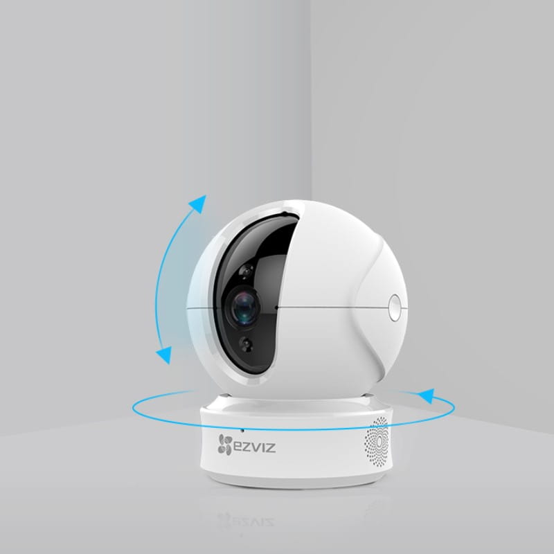 EZVIZ C6N została zaprojektowana tak, aby pasowała do każdego wnętrza. Jej kompaktowa obudowa z możliwością obrotu sprawia, że można ją zamontować zarówno na suficie, jak i na półce.