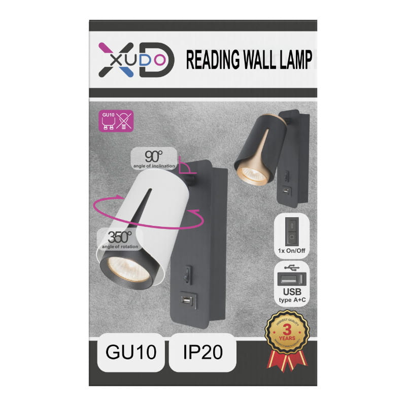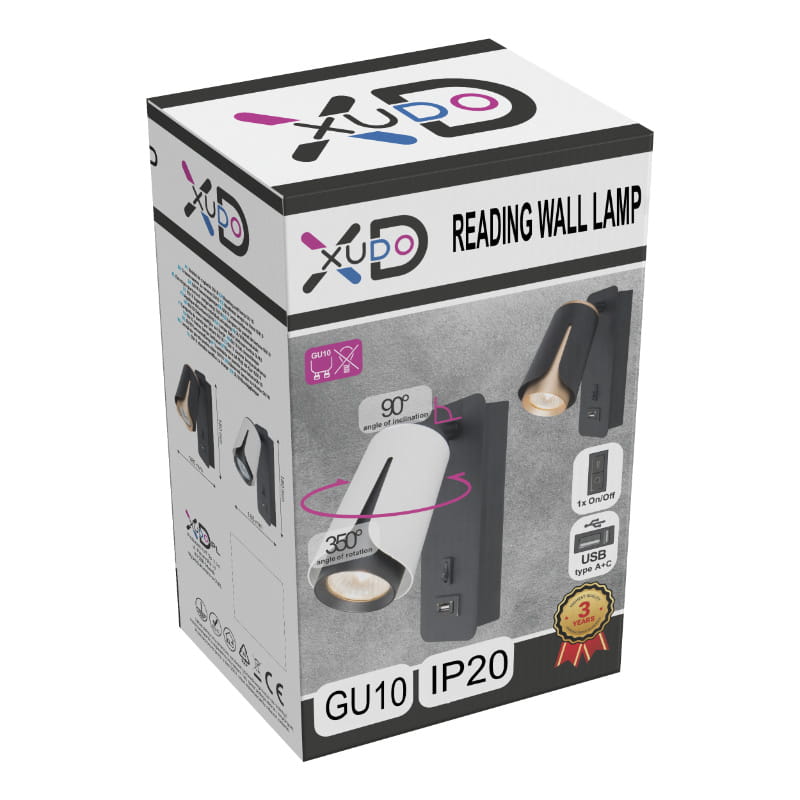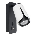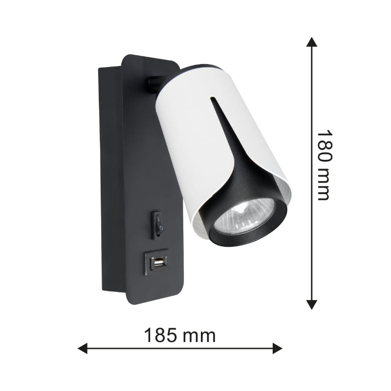 Kinkiet do czytania 2 x GU10, 1 x USB, biało-czarny