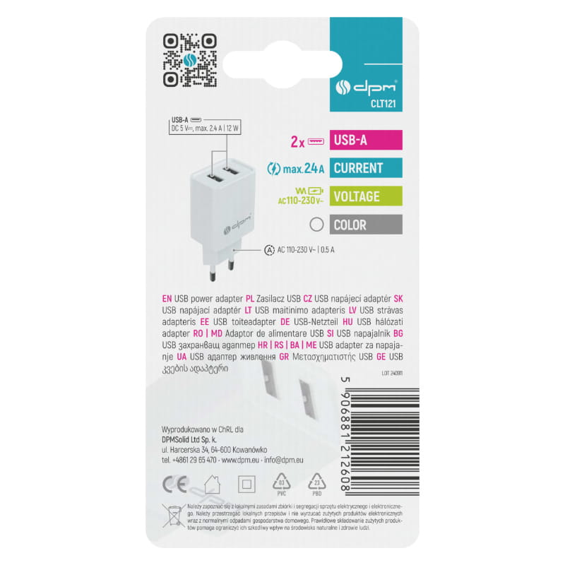 Ładowarka sieciowa CLT121 to doskonałe rozwiązanie dla osób poszukujących niezawodnego i wygodnego adaptera do ładowania dwóch urządzeń jednocześnie. Wyposażona w dwa gniazda USB typu A, ładowarka zapewnia szybkie i stabilne ładowanie z natężeniem 2,4 A (12 W), co sprawia, że doskonale nadaje się do smartfonów, tabletów, słuchawek bezprzewodowych oraz powerbanków.