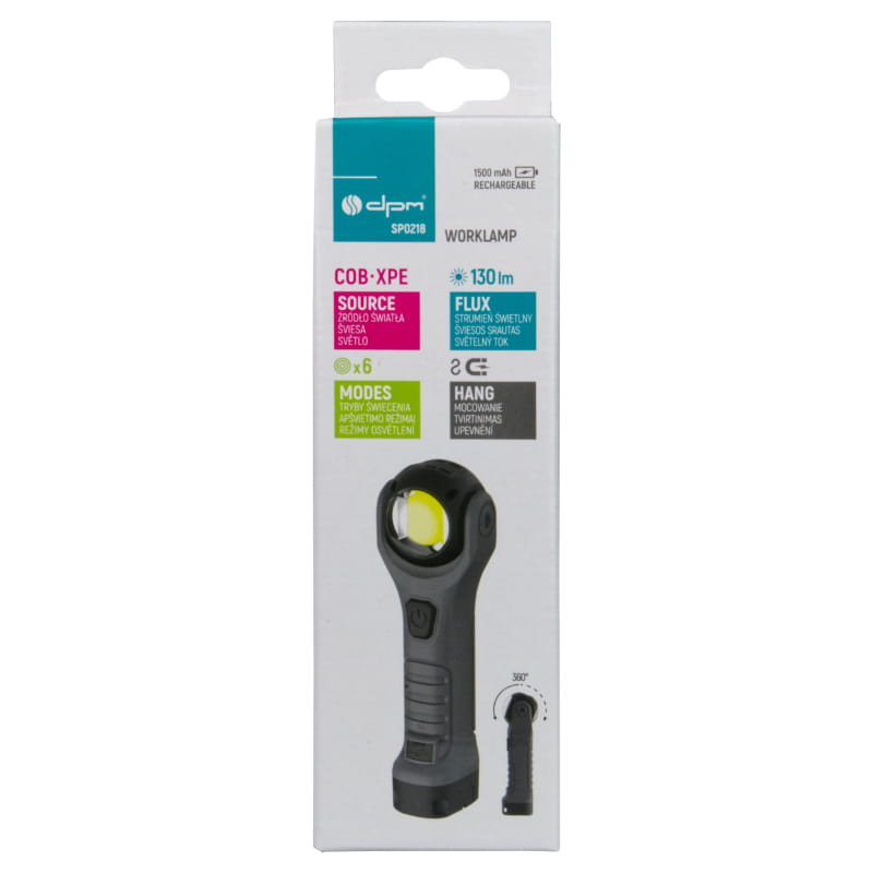 Lampa COB ładowalna, 360o, 130 lm, 1500 mAh