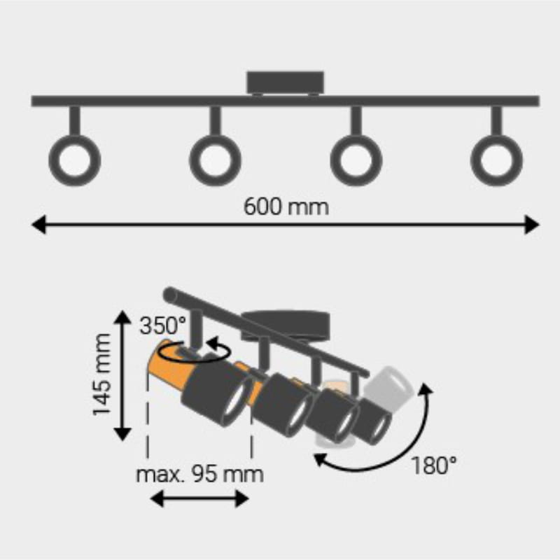 Lampa punktowa 4 x GU10, czarno-złota
