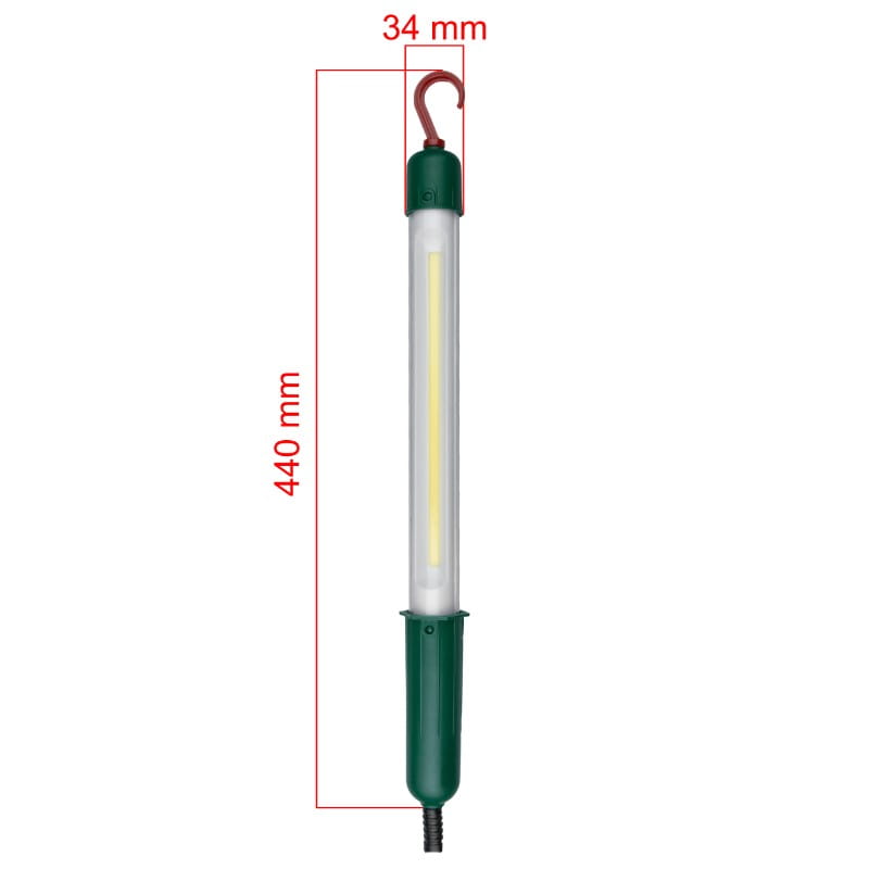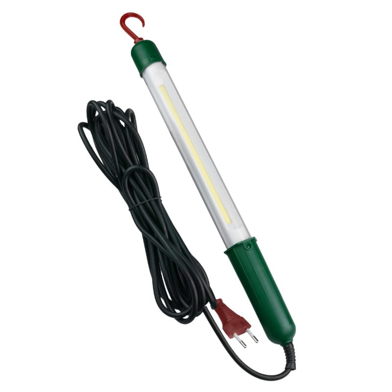 Lampa jest wyposażona w hak do zawieszenia, co umożliwia wygodne zawieszenie jej w dowolnym miejscu, zapewniając odpowiednie oświetlenie bez potrzeby trzymania jej w ręce. Jest to szczególnie przydatne w warsztatach czy garażach.