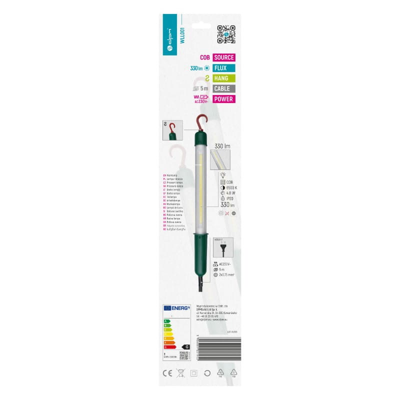 Lampa robocza WLL001 charakteryzuje się mocą 4.8 W, co zapewnia wydajne oświetlenie przy niskim zużyciu energii. Pomimo przypisania do klasy energetycznej G, jej efektywność świetlna jest znakomita dzięki zastosowaniu diod LED COB.