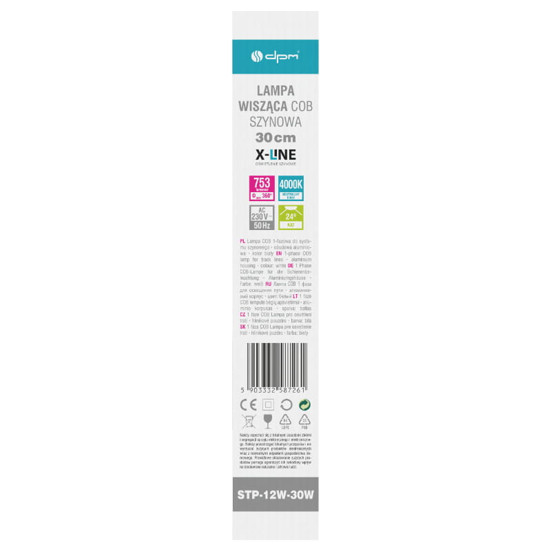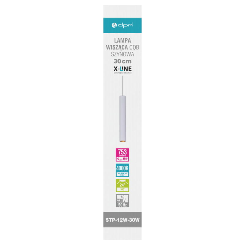 Lampa wisząca szynowa, 12 W, 753 lm, 4000 K, 30 cm, biała, X-LINE, marki DPM