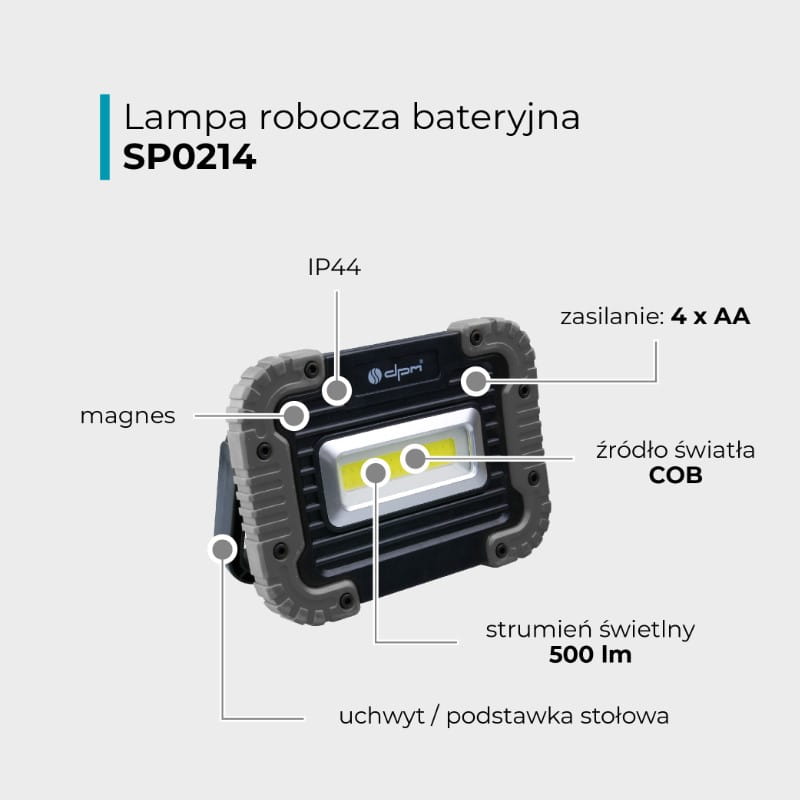Latarka robocza SP0214 to niezastąpione narzędzie dla majsterkowiczów, mechaników, instalatorów oraz wszystkich, którzy potrzebują jasnego i trwałego źródła światła w pracy czy na biwaku.