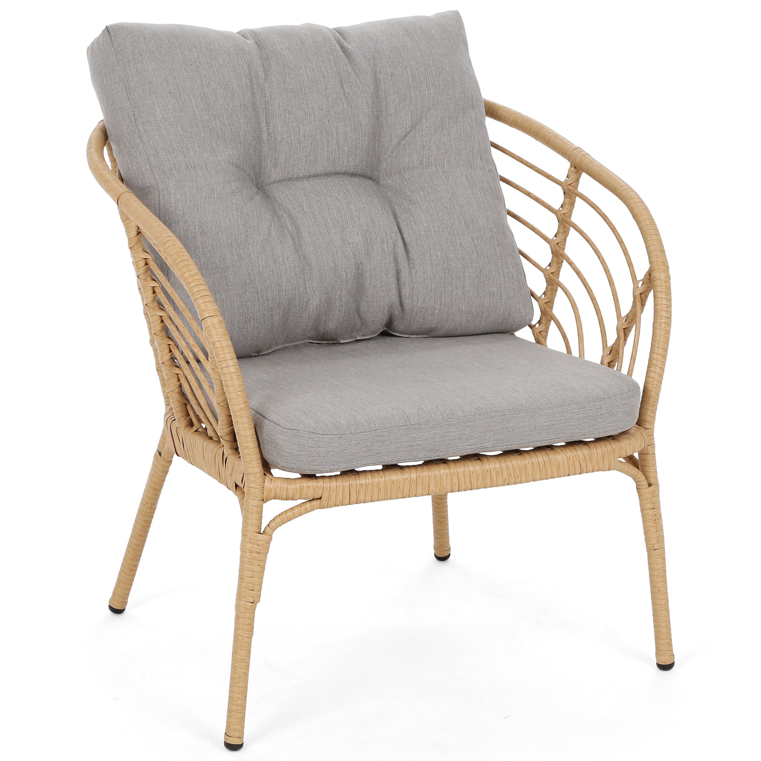 Zestaw mebli ogrodowych Toskania to elegancki i komfortowy komplet z technorattanu, idealny do ogrodu, na taras lub balkon. Utrzymany w stonowanej, beżowo-jasnoszarej kolorystyce, doskonale komponuje się z otoczeniem. Wykonany z trwałego technorattanu, odpornego na warunki atmosferyczne, jest łatwy w utrzymaniu czystości. W skład zestawu wchodzi wygodna sofa, dwa fotele i stolik kawowy.