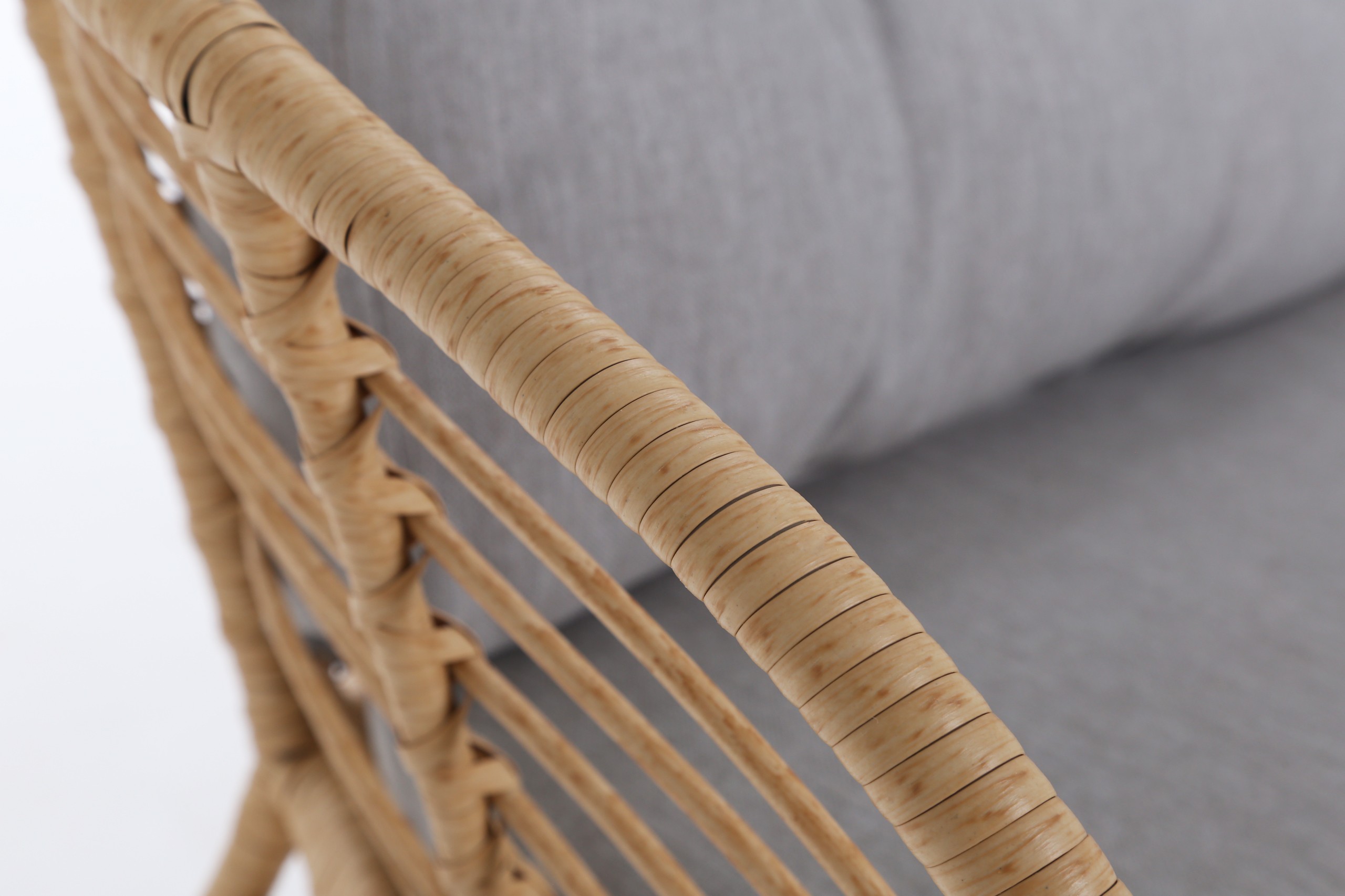 - Kolor stelaż beżowy, poduchy jasnoszare.