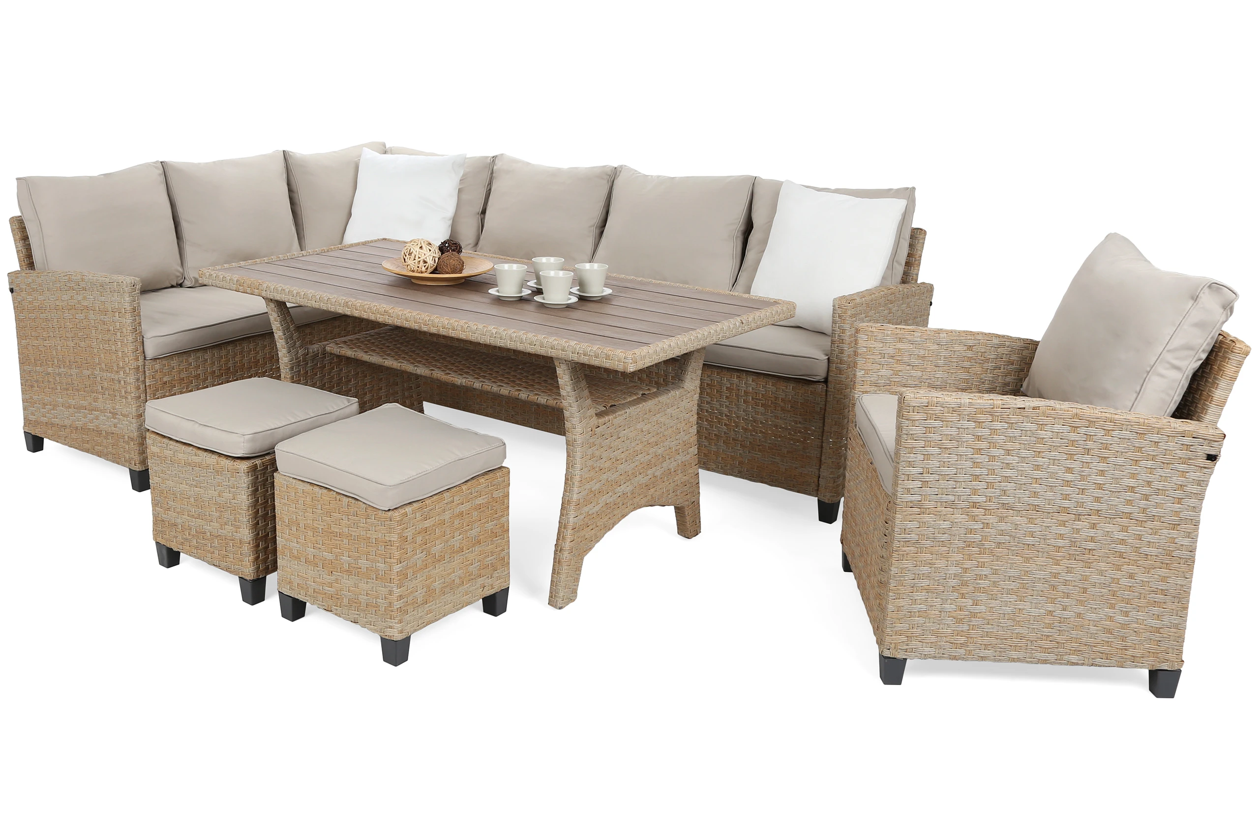 Narożne meble ogrodowe technorattanowe - zestaw Lagos Beige / Ecru