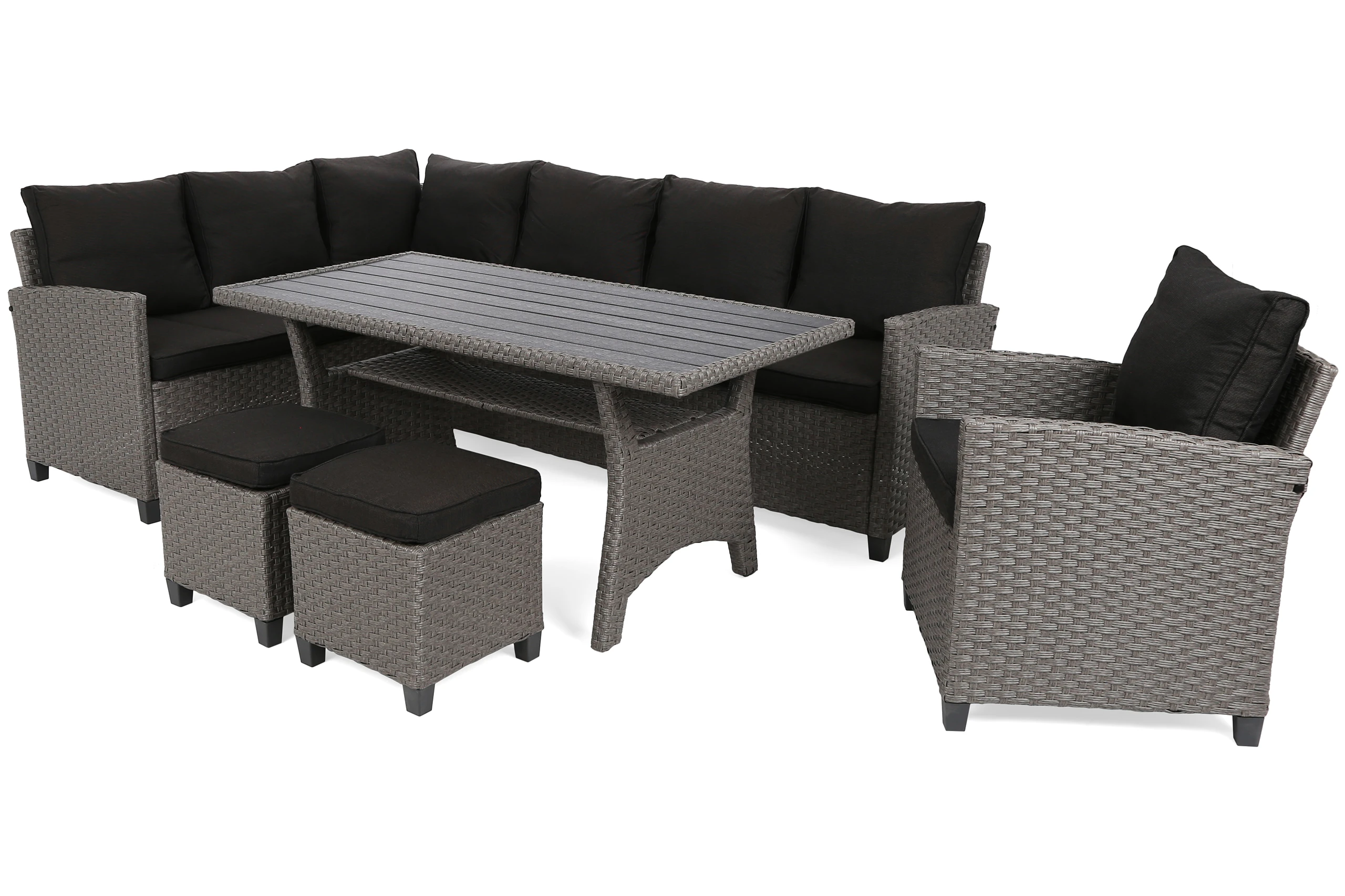 Narożne meble ogrodowe technorattanowe - zestaw Lagos Muddy Grey / Black Melange
