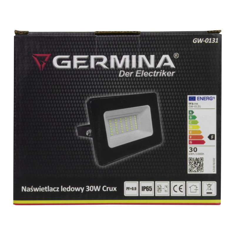 Naświetlacz LED, 30 W, 2700 lm, 6000 K, IP65, Crux, GERMINA