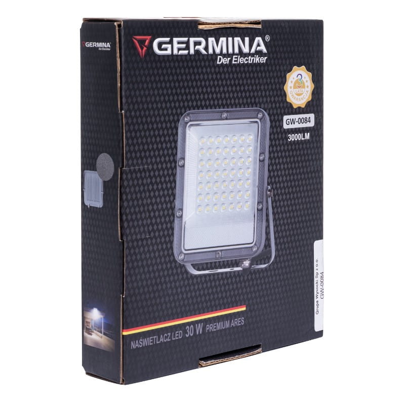 Naświetlacz LED, 30 W, 3000 lm, 5000 K, IP65, Ares, GERMINA