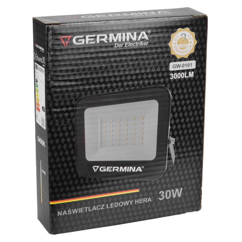 Naświetlacz LED, 30 W, 3000 lm, 6400 K, IP65, Hera, GERMINA