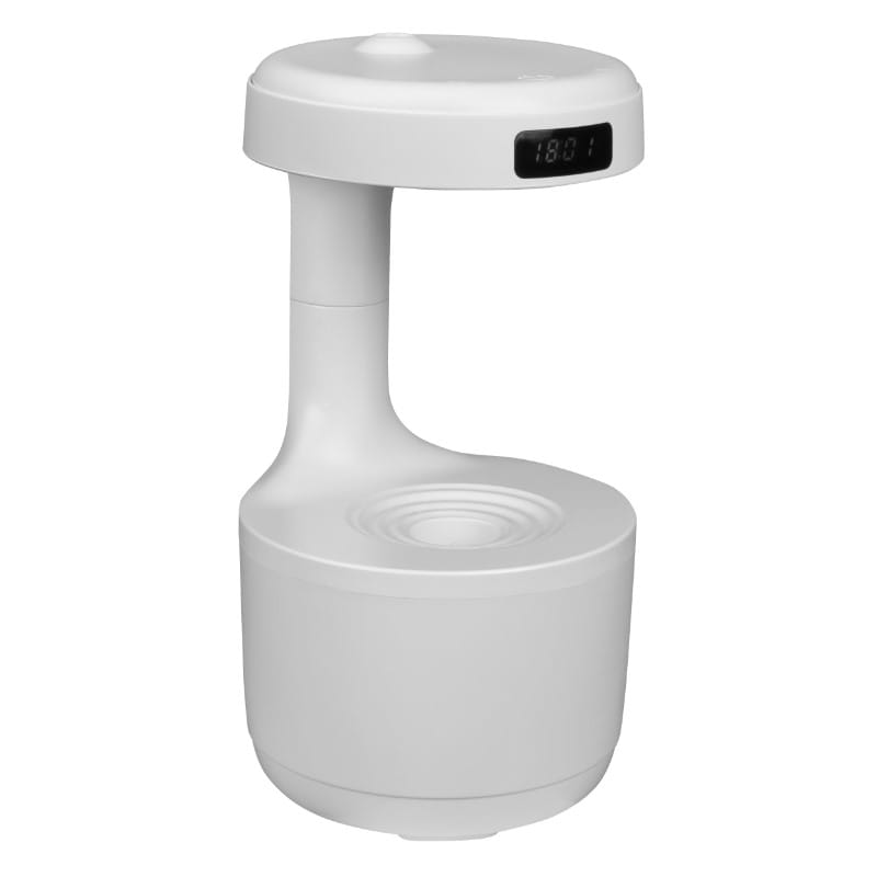Ten biały nawilżacz powietrza do pokoju wykorzystuje technologię antygrawitacyjną, która utrzymuje odpowiedni poziom wilgotności powietrza.