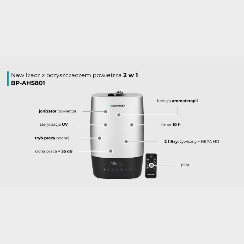 Odpowiednio nawilżone powietrze w domu jest niezwykle ważne dla zdrowia, ale może być niewystarczające do jego poprawy, gdy w powietrzu zalega duża ilość pyłków, cząsteczek smogu, kurzu oraz innych alergenów i zanieczyszczeń. Model AHS801 radzi sobie jednak z tym problemem wyśmienicie, dzięki zastosowaniu filtru HEPA H13 oraz sterylizacji światłem UV.