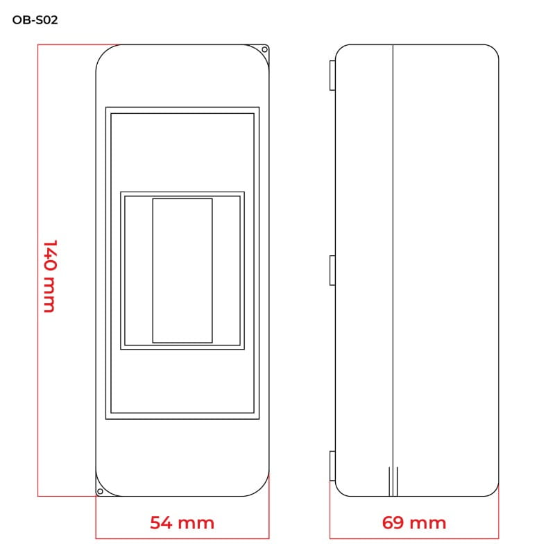 Obudowa S-2 ma kompaktowe wymiary 140 x 54 x 69 mm, co pozwala na wygodny montaż nawet w ograniczonej przestrzeni. Biały kolor sprawia, że obudowa dyskretnie wpasowuje się w większość wnętrz, zachowując spójność estetyczną.