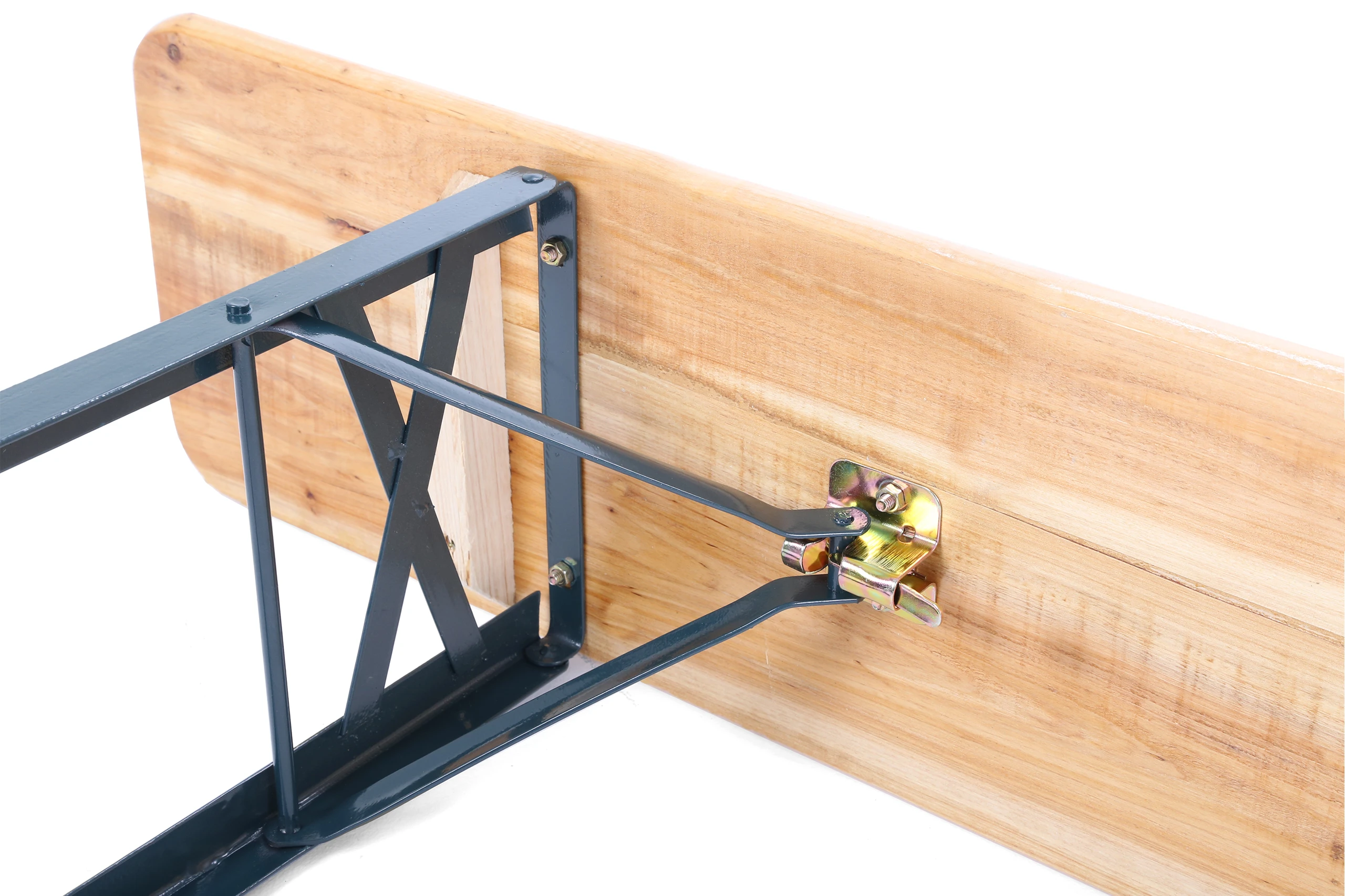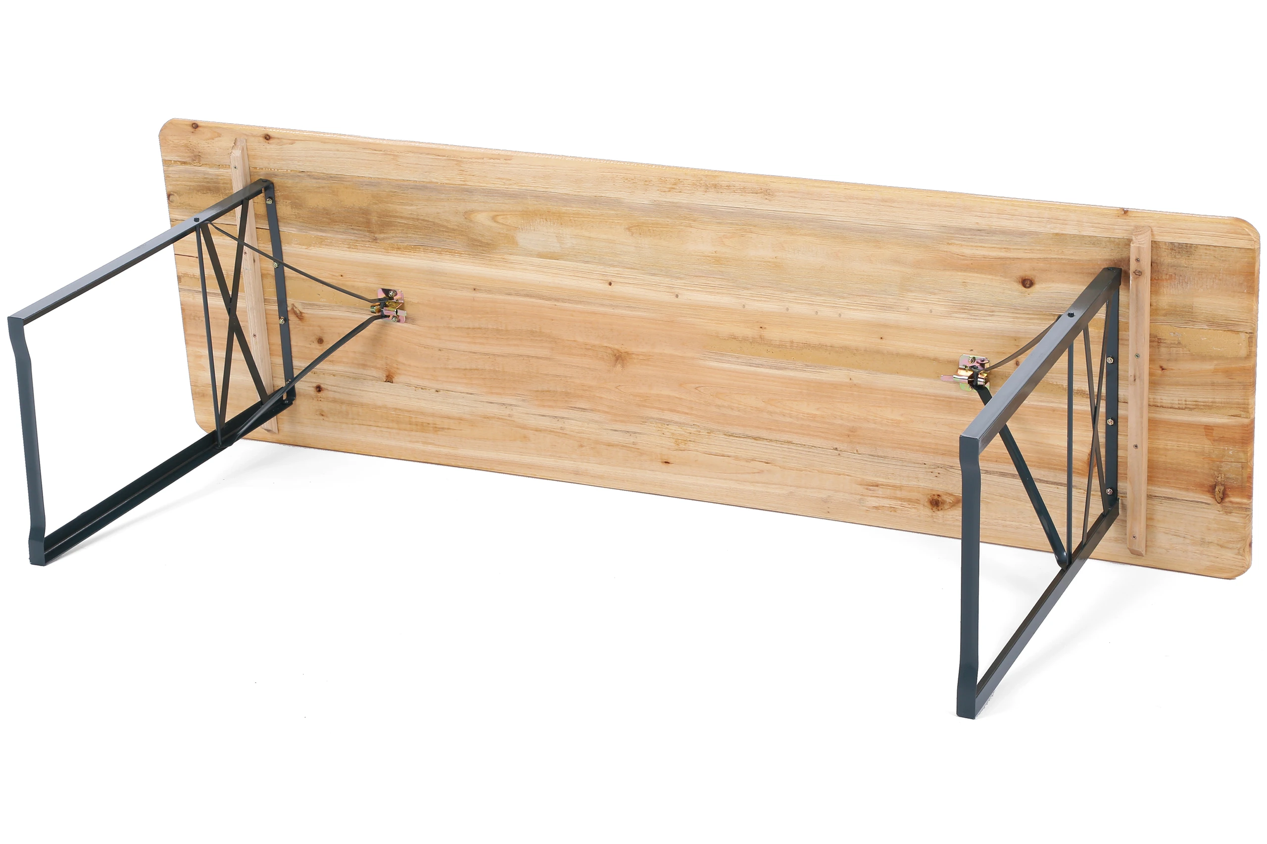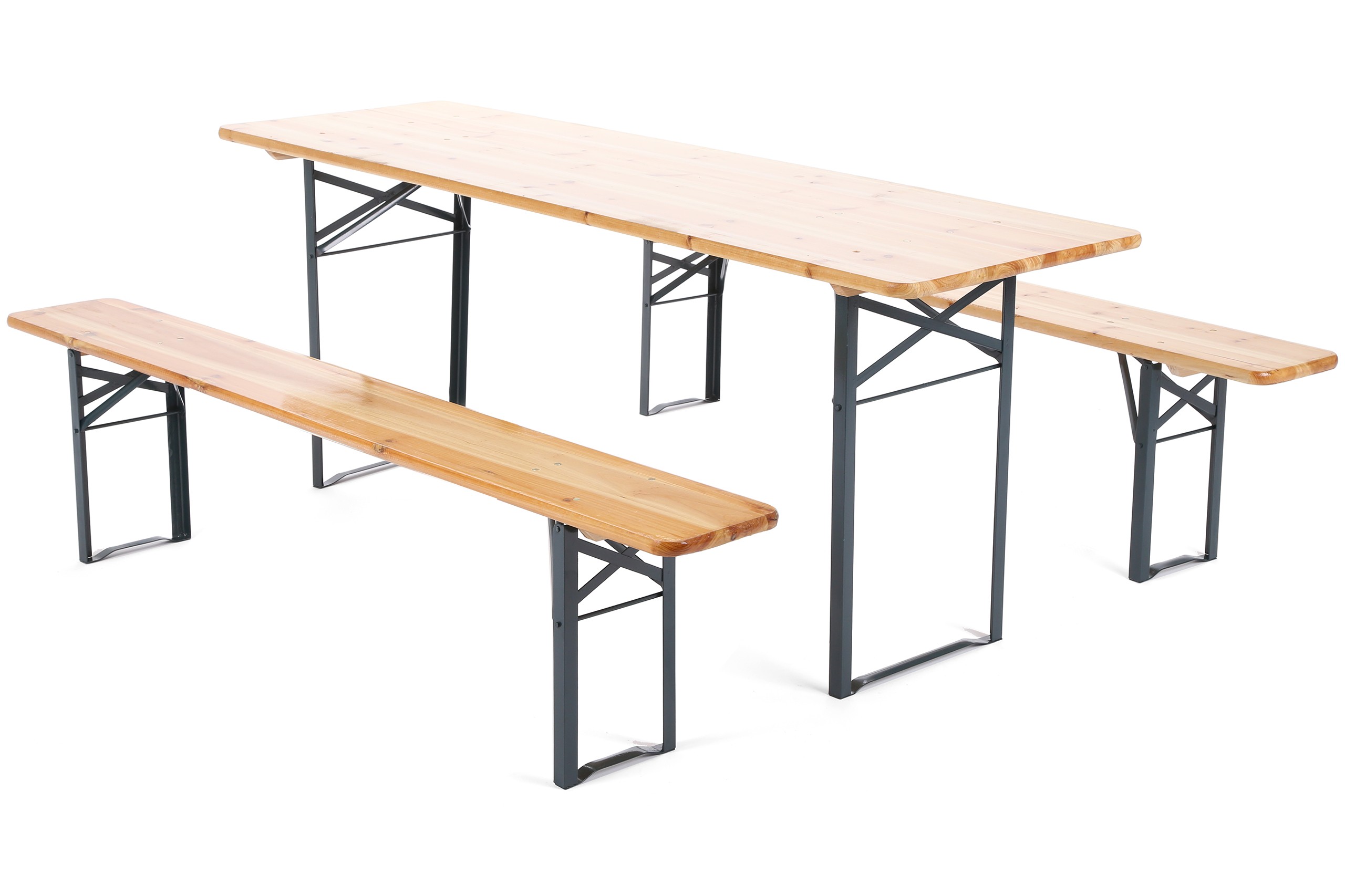 - Wymiary po złożeniu (szer. x gł. x wys.) stół: 60 cm x 12 cm x 200 cm / ławka: 25 cm x 12 cm x 200 cm