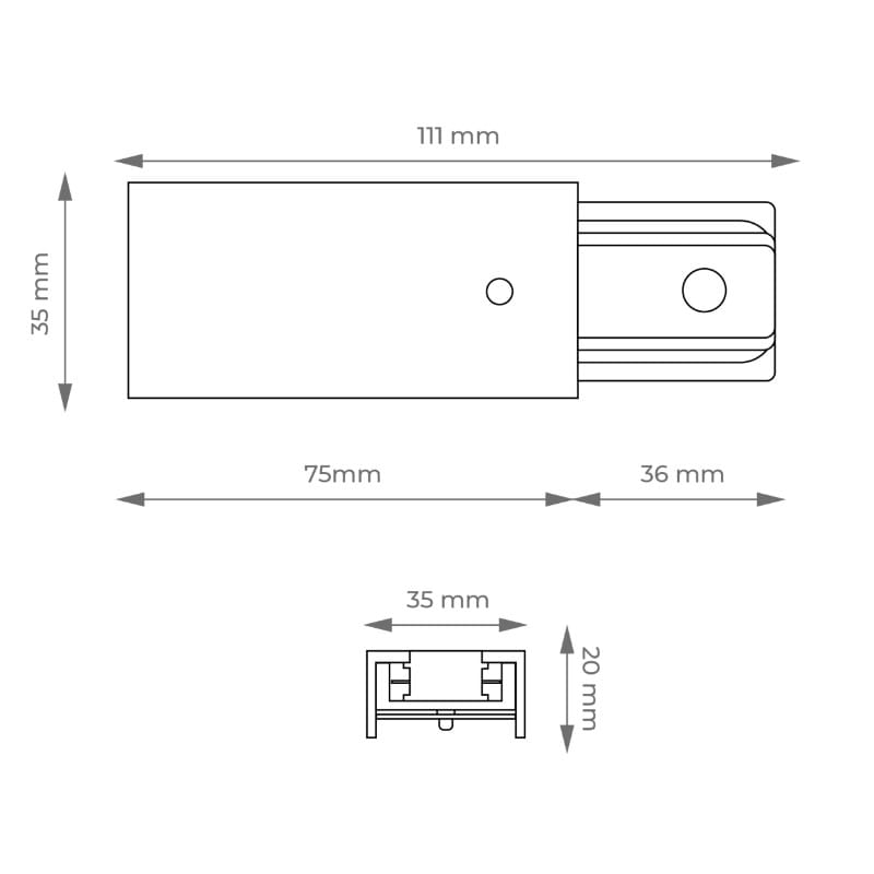 Szyna zbudowana jest z lekkiego profilu aluminiowego o szerokości 35 mm i wysokości 20 mm. Mały i lekki profil pozwala na stworzenie minimalistycznego i nowoczesnego systemu oświetlenia w pomieszczeniu. Do szyny dodawane są złączki końcowe oraz złączki zasilające umożliwiające podłączenie szyny bezpośrednio do sieci.