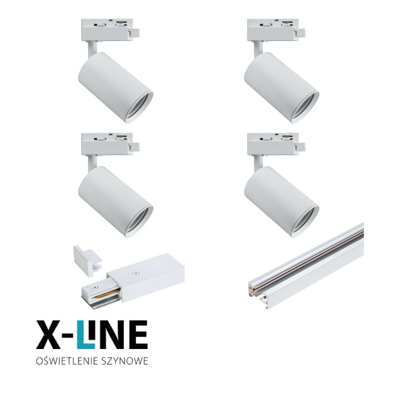 W zestawie szynowym X-LINE znajdują się dwie szyny 1-fazowe STS długości 1 m, cztery reflektory GU10 (bez żarówki)oraz złączka prosta typu "I" i złączki końcowe.