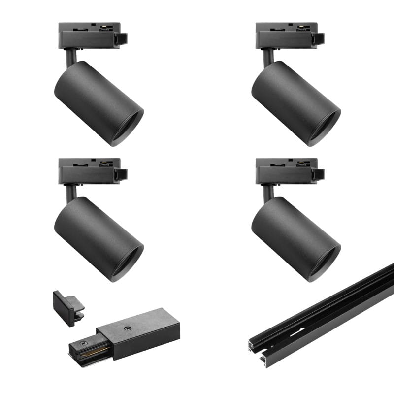 Zestaw oświetlenia szynowego 2 x szyna 1-metrowa 4 x reflektor GU10 czarny