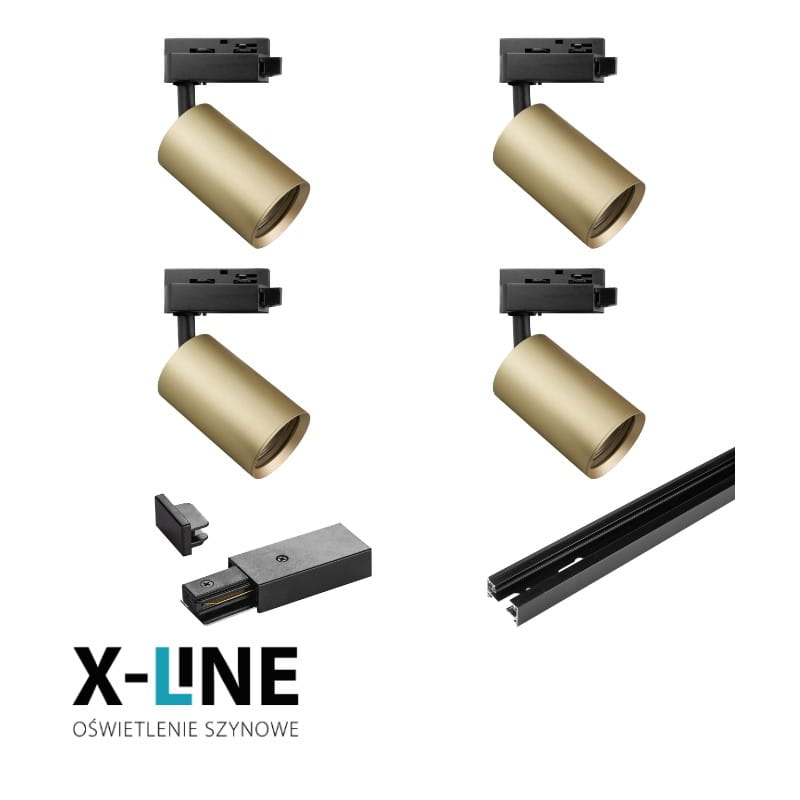 Zestaw oświetlenia szynowego 2 x szyna 1-metrowa 4 x reflektor GU10 złoty