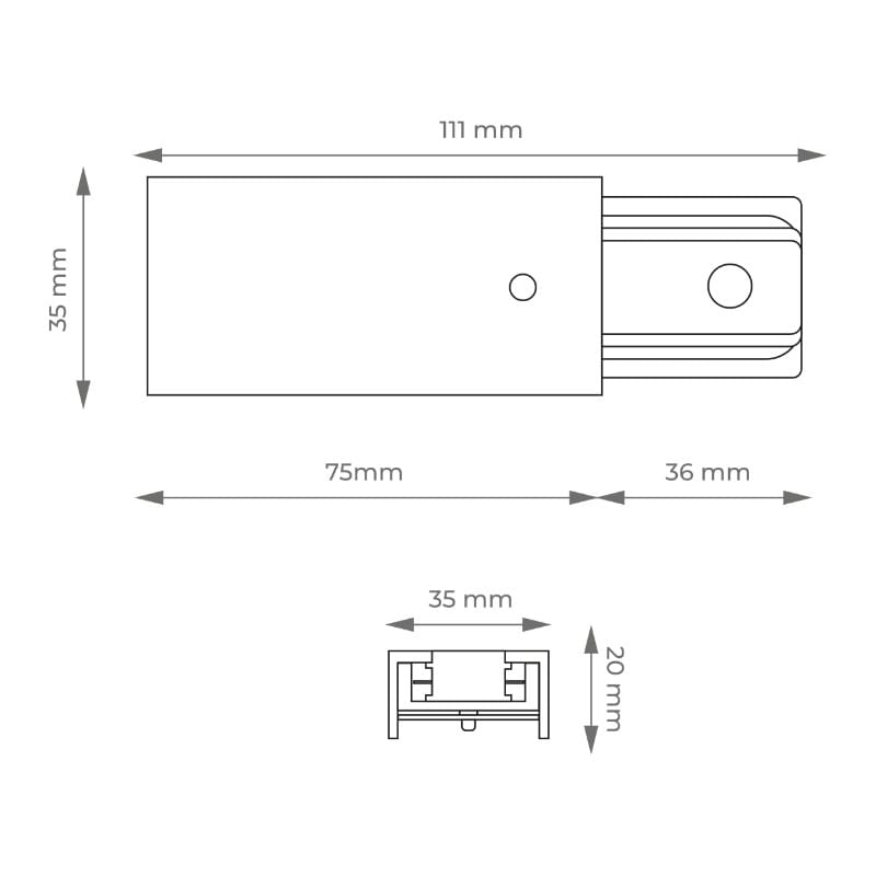 Szyny zbudowane są z lekkiego profilu aluminiowego o szerokości 35 mm i wysokości 20 mm. Mały i lekki profil pozwala na stworzenie minimalistycznego i nowoczesnego systemu oświetlenia w pomieszczeniu. Do szyn dodawane są złączki końcowe oraz złączki zasilające umożliwiające podłączenie szyny bezpośrednio do sieci.