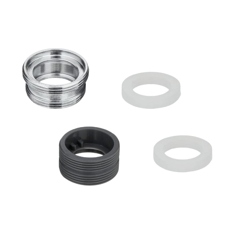 Dzięki gwintowi M22/24, perlator pasuje do większości standardowych baterii. Dołączone elementy montażowe, takie jak uszczelki i adaptery, zapewniają łatwą instalację oraz szczelność połączeń.