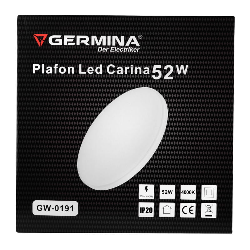 Plafon LED 2 w 1, 52 W, 4875 lm, 4000 K, IP20, okrągły, biały, Carina, GERMINA