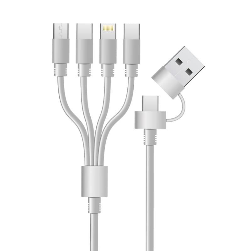 Przewód USB 6 w 1 posiada szeroki zestaw końcówek, który sprawia, że jest niezwykle funkcjonalny:
