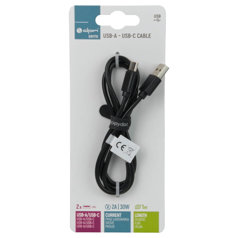 Przewód USB A - C to niezbędne akcesorium do ładowania i synchronizacji danych między urządzeniami. Dzięki kompatybilności z USB 2.0 oraz maksymalnemu natężeniu ładowania 2 A (30 W) przewód zapewnia stabilne i efektywne działanie. Długość 1 m sprawia, że jest idealnym wyborem do codziennego użytku, a czarny kolor dodaje mu estetycznego wyglądu.