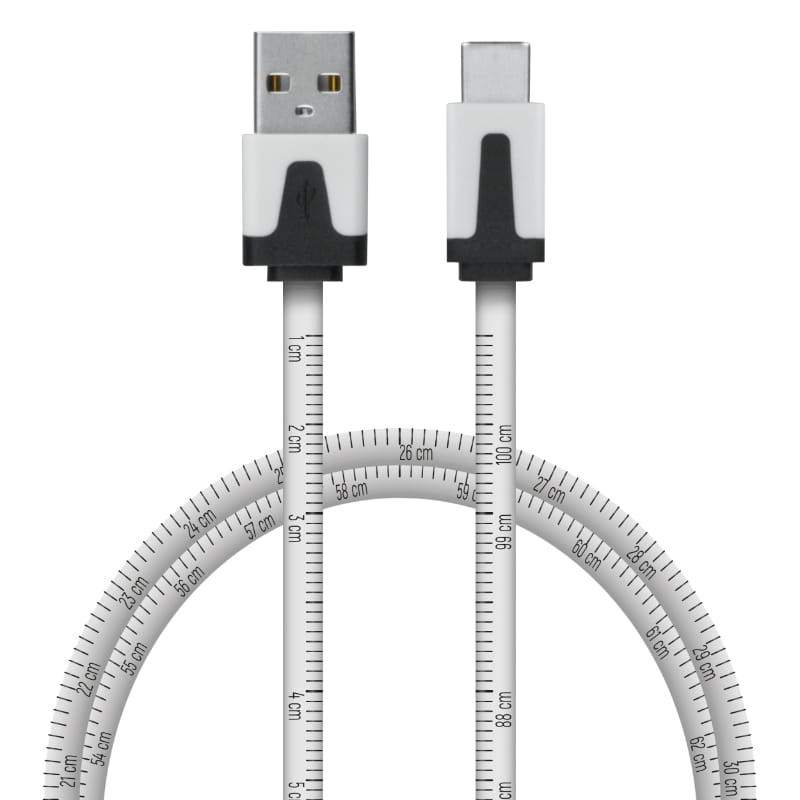 Przewód USB A - C z miarką, biały, 1 m – wygodne ładowanie i precyzyjne pomiary