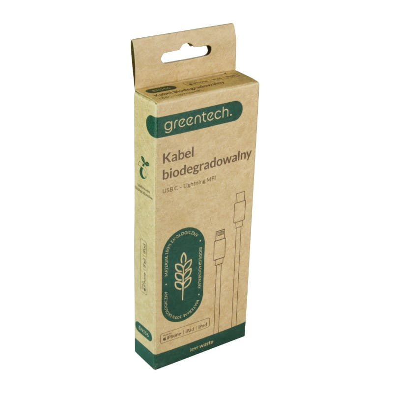 Biodegradowalny przewód USB C - Lightning z licencją Apple MFI