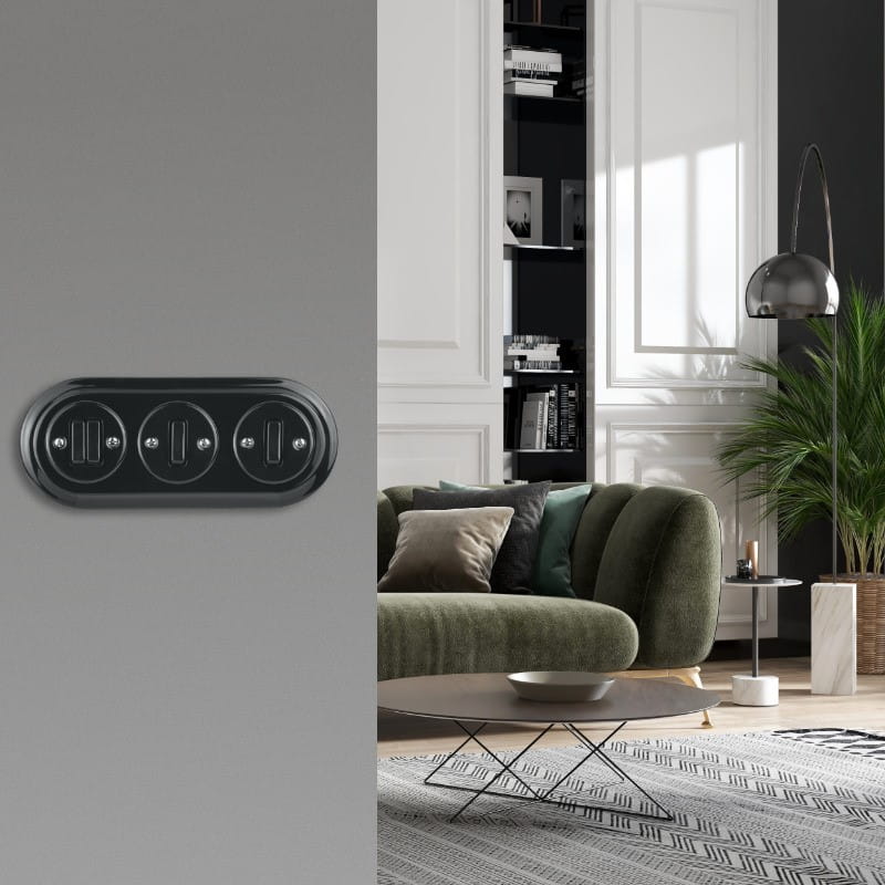 Ramka 3-krotna służy do estetycznego zabezpieczenia włączników i gniazdek. Owalna ramka trzymodułowa została wykonana z wysokiej jakości ceramiki w kolorze czarnym.