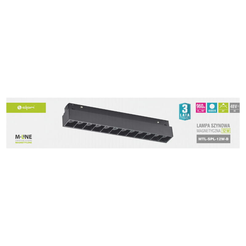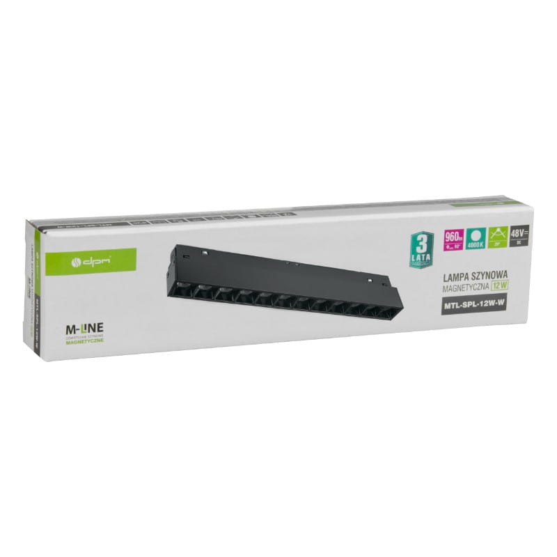 Reflektor liniowy MTL-SPL-12W-B wyposażony w aż 12 punktów świetlnych, oferuje moc 12 W i strumień świetlny 960 lm, zapewniając jasne i równomierne oświetlenie.